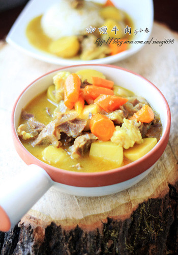 13、放入咖喱块,中小火炖牛肉7成熟;