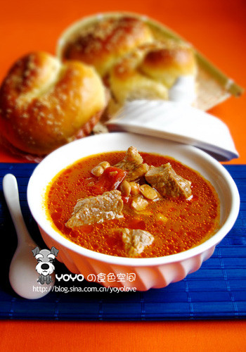 材料:牛肉1000g,番茄黄豆425g1罐,西红柿4个,洋葱1个,番茄酱300g,盐10g